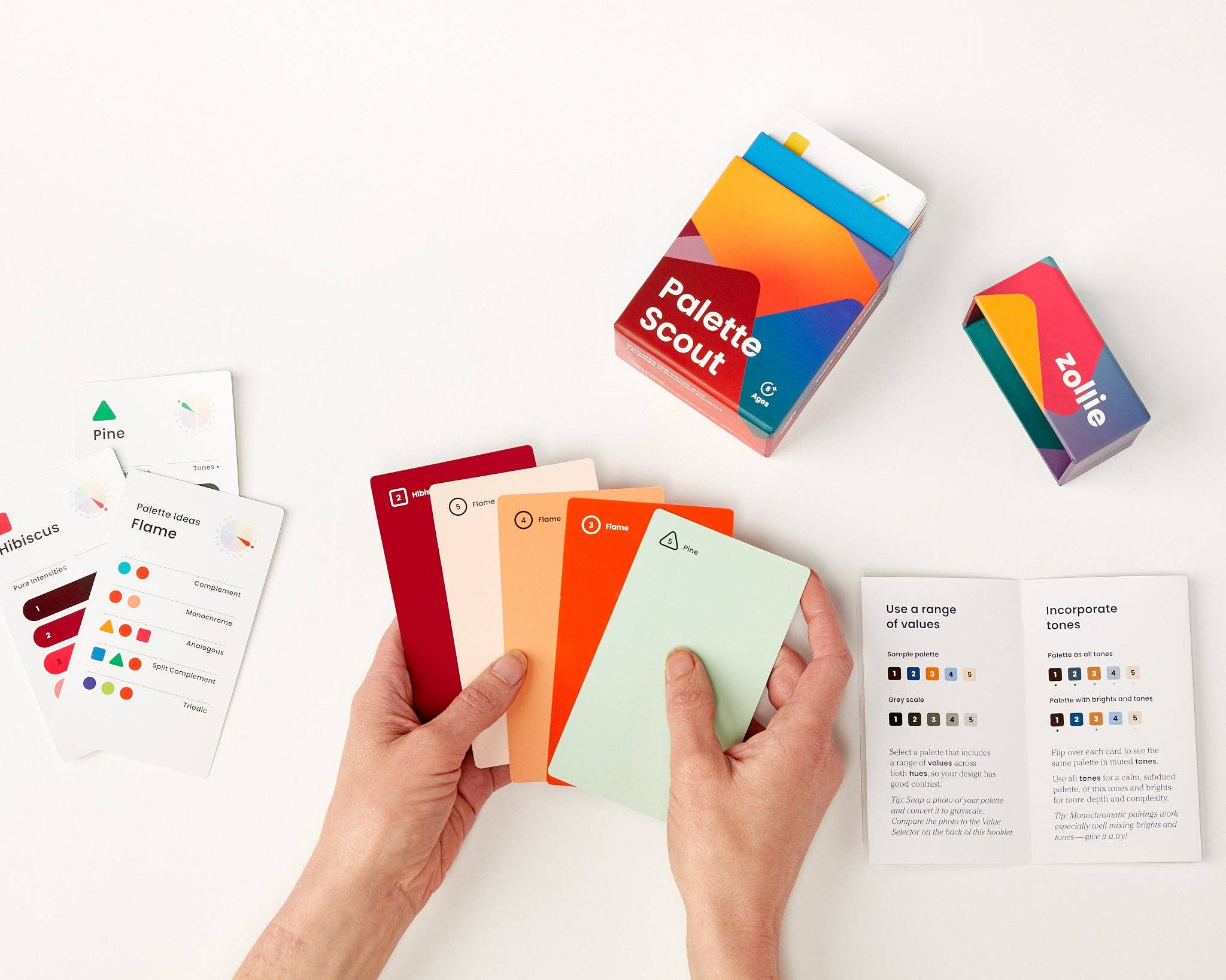 Dive into the world of color with a playful, open-ended experience for artists and makers of all ages. Palette Scout is a fun, intuitive way to learn about color, with 180 colors to combine into color palettes and 8 challenge cards to help you break out of your comfort zone.